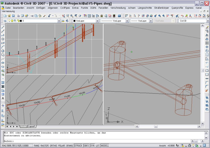 CivilPipes verknüpft das Autodesk-Produkt AutoCAD Civil 3D mit BaSYS und bietet Funktionalitätserweiterungen im Bereich Kanalplanung. Die CAD-Applikation CivilPipes besteht aus drei Komponenten: