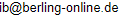 E-Mails werden ohne Verschlüsselungstechniken an das Ingenieurbüro Detlev Berling gesandt. Die darin enthaltenen Informationen können daher ggf. während der Übertragung von Dritten eingesehen werden. Deshalb sollten keine datenschutzrechtlich relevanten Informationen per E-Mail übertragen werden.
